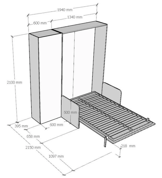 Dimensions total lit fermé : L 194 x P 105 x H 210 cm