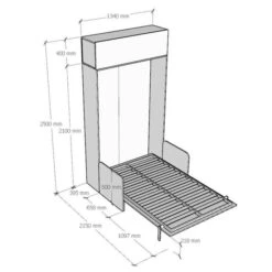 Dimensions total lit fermé : L 134 x P 105 x H 250 cm