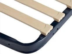et 1 sommier métallique sur pieds escamotables à lattes multiplis.