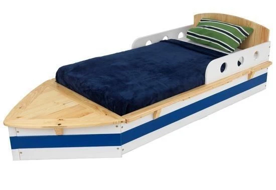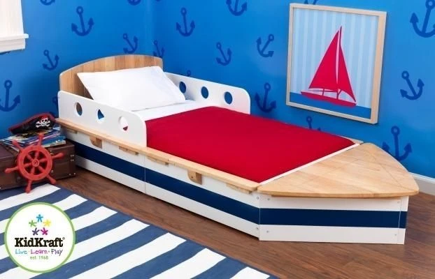 Suffisamment bas pour offrir un accĂšs facile pour les enfants pour cet adorable lit bateau de la marque Kidgraft.