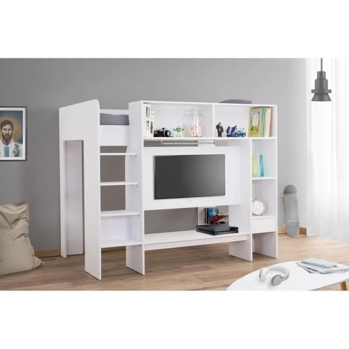 Lit CombinĂ© 90 X 190 Cm 1 Couchage Blanc Uni – COMBI