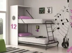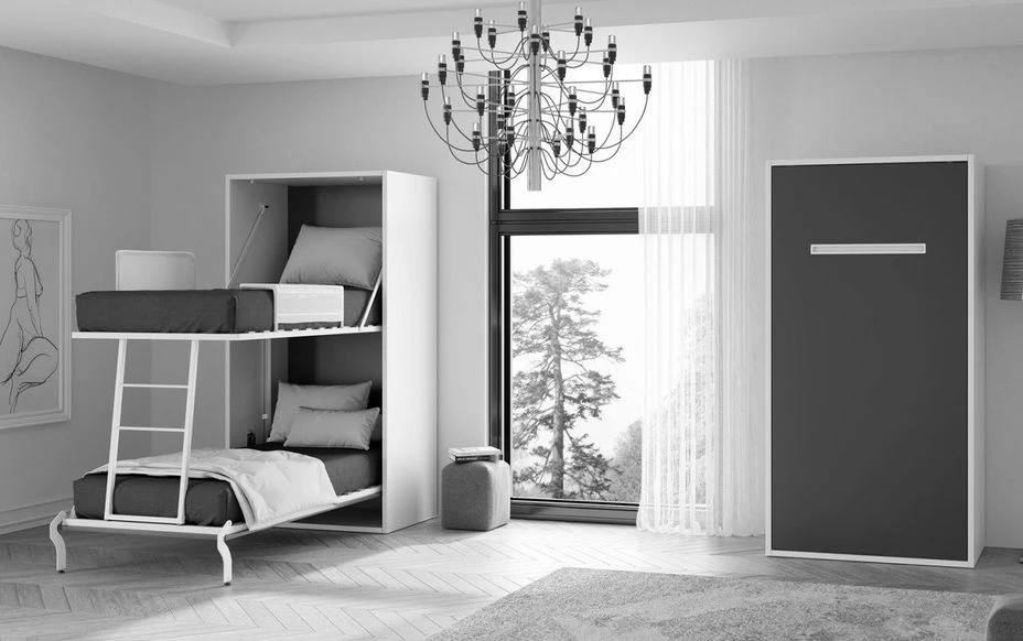 Une idĂ©e ingĂ©nieuse d’optimiser l’espace de votre intĂ©rieur : les 2 lits coulissent Ă l’aide d’un systĂšme parfaitement sĂ©curisĂ© pour s’insĂ©rer dans une jolie armoire discrĂšte verticale.