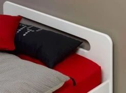 Il est fait en bois MDF blanc avec un style chic et intemporel, et son tiroir pourra vous servir de couchage d’appoint en accueillant un matelas