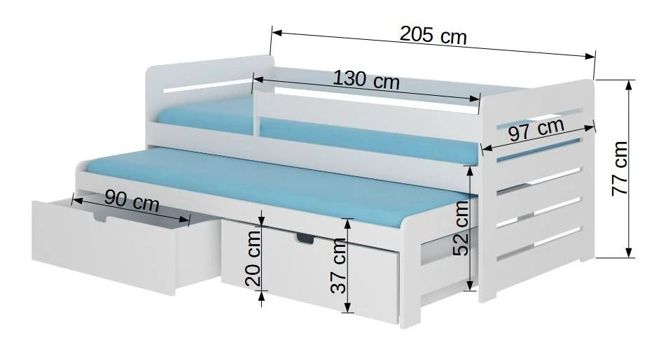 En plus de ses fonctionnalitĂ©s d’espace de couchage, notre lit gigogne est conçu pour maximiser le rangement dans la chambre de vos enfants. Avec deux coffres de rangement pratiques de L 90 x P 80 x H 18 cm chacun, vos enfants pourront facilement organiser leurs jouets, livres et autres effets personnels, favorisant ainsi un espace de vie bien ordonnĂ© et agrĂ©able.