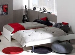 Le lit du bas et les 2 coffres de rangement sur roulettes se glissent sous le lit du haut, offrant ainsi un espace de couchage supplĂ©mentaire sans encombrer la chambre. Ces 2 couchages de 90×200 cm permettent Ă vos enfants de dormir confortablement et en toute quiĂ©tude, offrant Ă©galement la possibilitĂ© d’accueillir un ami pour une nuit paisible.