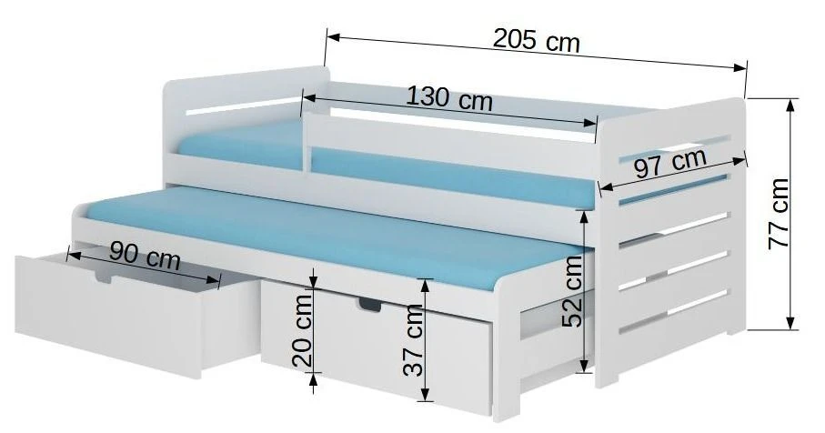 En plus de ses fonctionnalitĂ©s d’espace de couchage, notre lit gigogne est conçu pour maximiser le rangement dans la chambre de vos enfants. Avec deux coffres de rangement pratiques de L 90 x P 80 x H 18 cm chacun, vos enfants pourront facilement organiser leurs jouets, livres et autres effets personnels, favorisant ainsi un espace de vie bien ordonnĂ© et agrĂ©able.