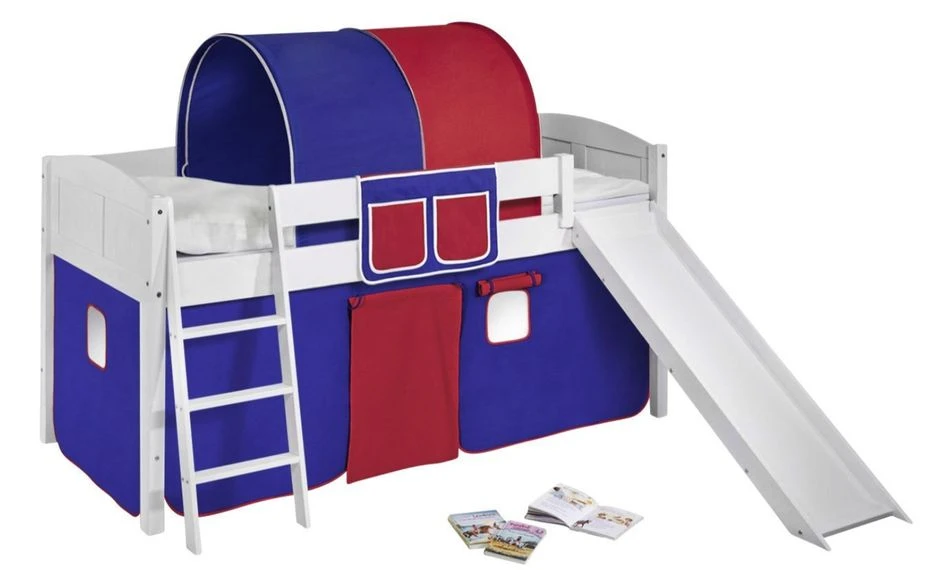 Ce lit combiné toboggan est d’une fabrication robuste et conforme aux normes EN 747-1:2007 et EN 747-2:2007 pour les lits mezzanine et à étages pour enfants.