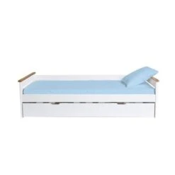 NULEA Lit Gigogne Enfant En Bois Pin Massif Et MDF – DĂ©cor Chene Et Blanc -2 X L90 X L190 Cm